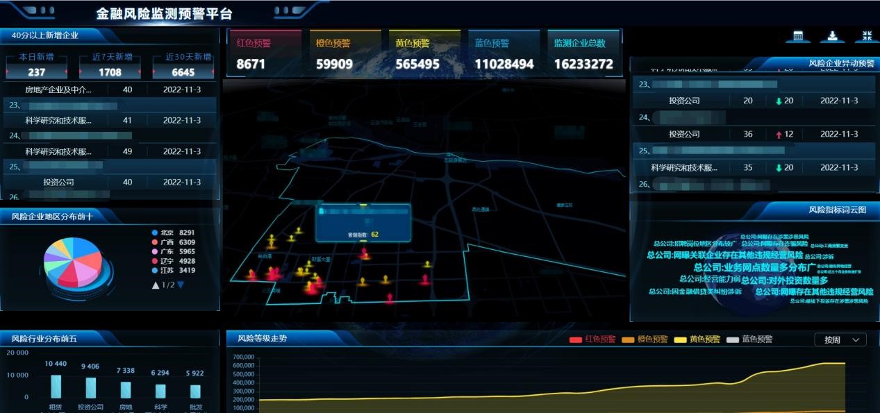 利用冒烟指数通过大数据的采集,融合,标注,分析,建模,通过大数据监测预警平台,实现对非法集资,网络传销,非法放贷等金融风险的实时监测预警,监测范围覆盖财富管理,投资理财,私募,养老,房地产等50余个重点领域,通过平台可从微观层面查看企业全息风险画像及风险证据 沙巴体育,从宏观层面可实时监控地区/领域整体风险态势,实现金融风险的早发现,早预警,早处置。