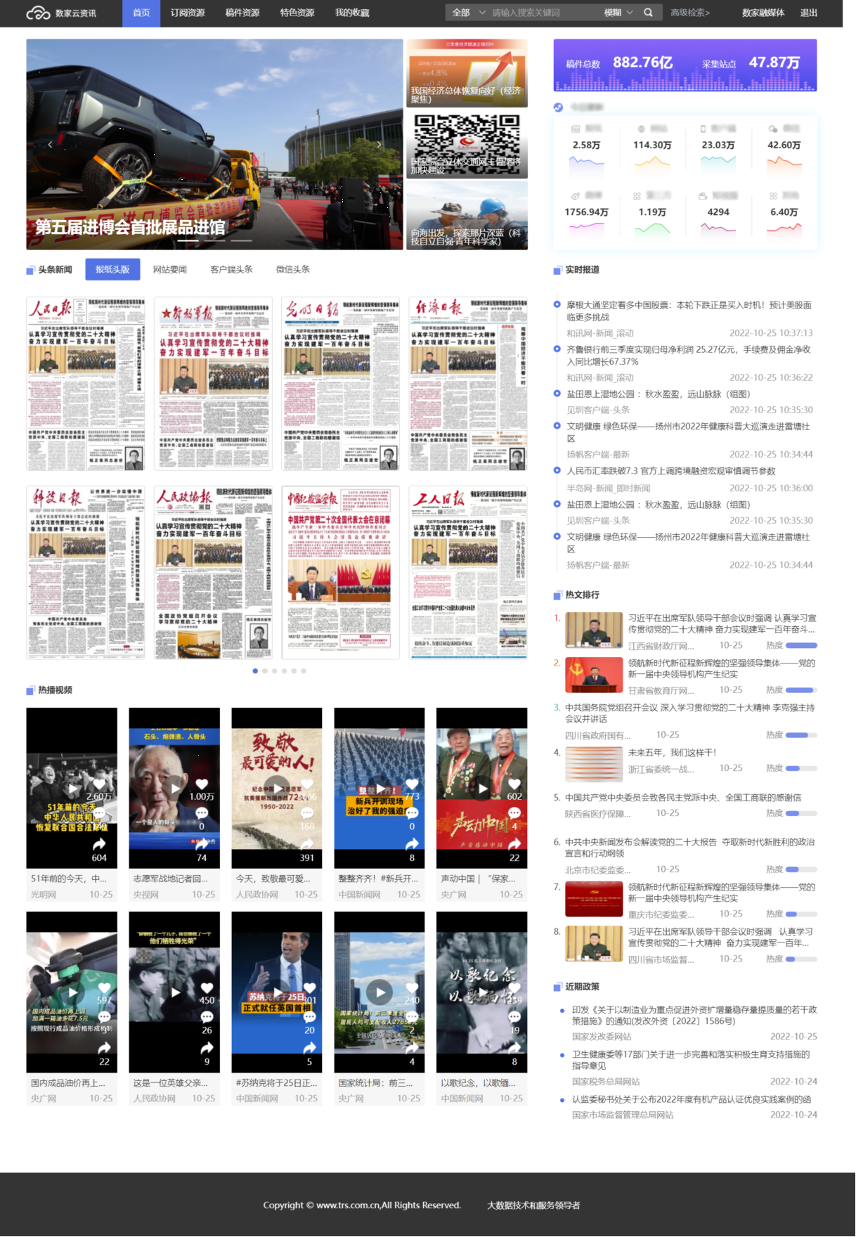 将数字报,网站,新闻客户端 沙巴体育平台登录,微信,微博,第三方平台,短视频平台的内容数据进行结构化分类整合,以“云服务”的方式满足用户对互联网资讯内容的数据需求,可实现内容精细化检索,个性化订阅,基础渠道数据供给,特色资源数据供给,可根据用户实际数据需求分析自动对接数据到用户的应用系统中。