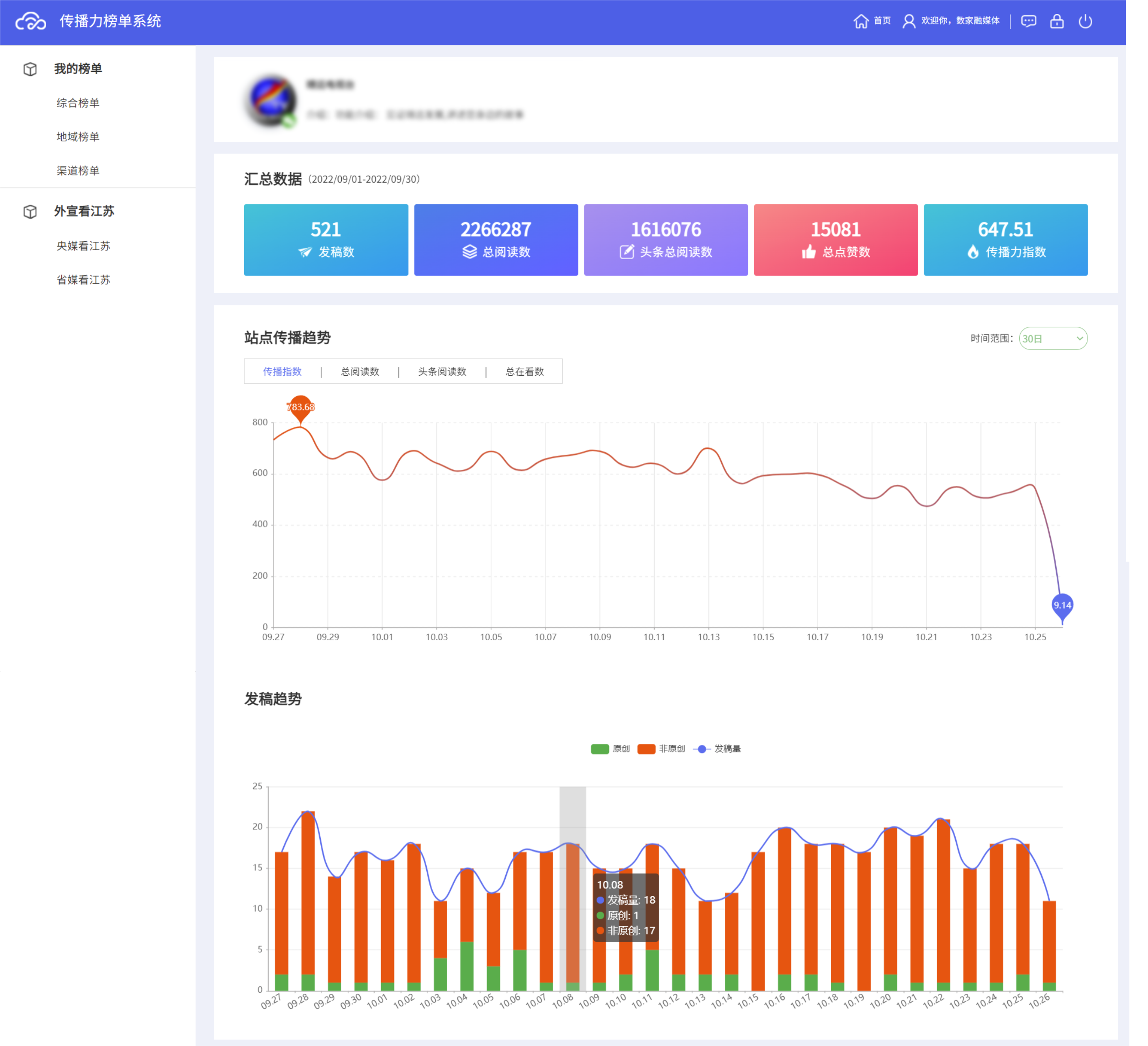 对海量互联网传播数据进行实时监测,基于科学系统的评价指标体系 沙巴体育安卓版,构建权威榜单,实现全渠道,多维度,跨周期的站点排行,账号排行,内容排行,定制化专题排行及跨渠道机构综合排行,为用户衡量宣传主体的传播力,发掘优质内容提供依据,有效助力内容传播运营。