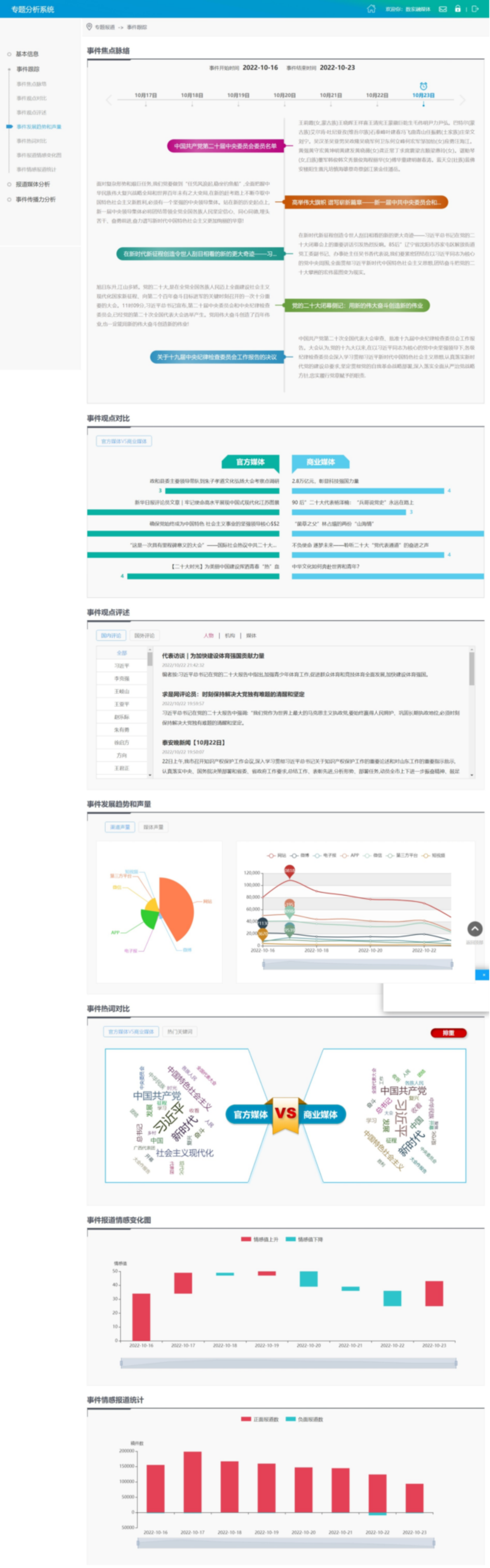 以事件或专题为中心,构建专属的事件专题分析服务,包括事件的总览、关键因子探索、话题漂移追踪、事件溯源、传播节点分析等一系列深度挖掘的内容语义分析场景。