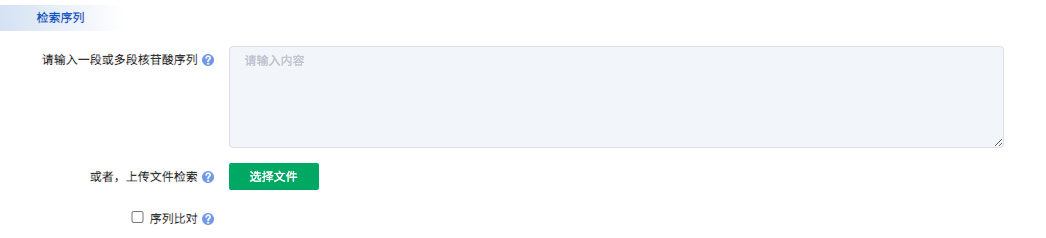 支持核苷酸序列检索核苷酸数据库、蛋白质序列检索蛋白质数据库、翻译核苷酸检索蛋白质数据库、蛋白质序列检索翻译核苷酸数据库,共五种检索策略。用户可以通过输入一条或多条裸序列、fasta格式序列进行检索;也支持上传序列文件(支持.txt和.FASTA格式文件)进行检索,目前最多可支持200条序列同时进行检索。